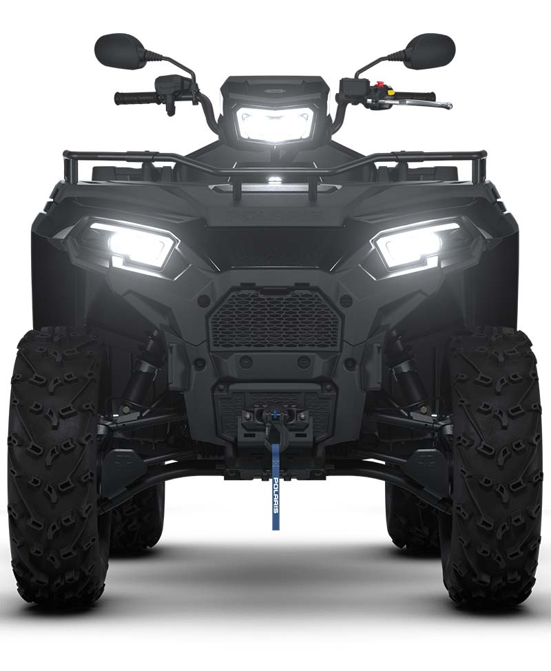 - 3 modes de conduite : Standard / Travail / Performance, Prise électrique 12 volts, port de charge lente intégré, pré-câblé pour chauffe-mains et chauffe-pouces, système de sécurité activé par code PIN, Treuil de 1 587kg (3 500 lb) avec corde synthétique et NOUVEAU système d'arrêt automatique, Rallonge de porte-bagages avant, benne basculante, protections de bras triangulaires avant et arrière, plastiques peints