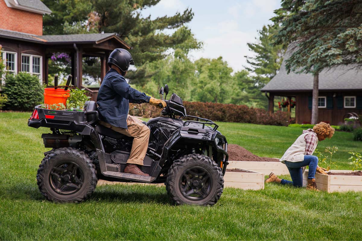 Le Sportsman X2 570 vous aidera à faire face à tous les travaux grâce à sa capacité de traction énorme de 830 kg et de chargement de 181 kg de la benne basculante.